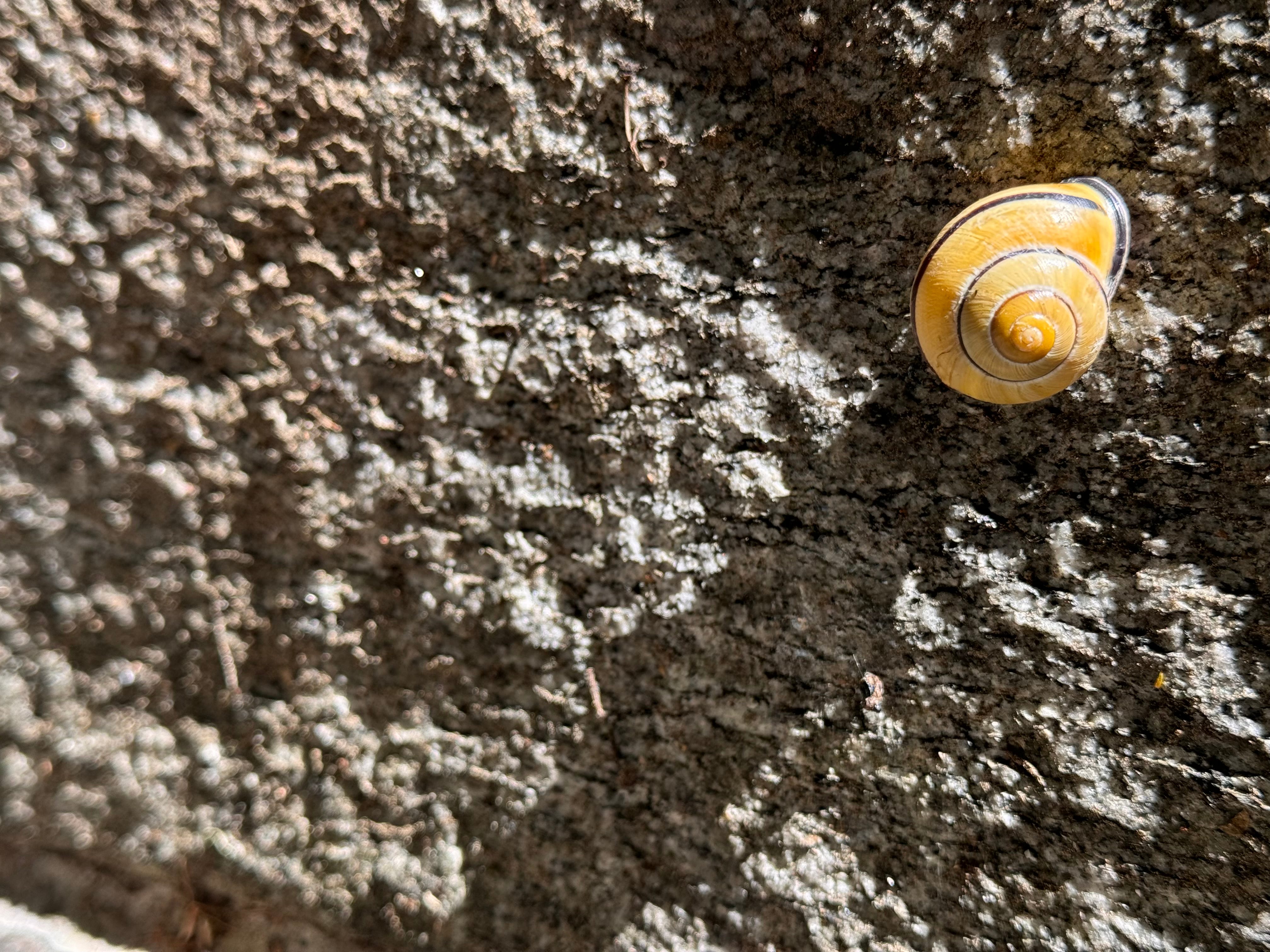 I’m teaching a course all this week, and during a brief coffee break on a warm afternoon, I saw a gorgeous snail on the concrete steps. There’s something about snails — their simplicity, the gorgeous swirl of their shells, the silver trail they leave, the things they’ve come to represent in mythology.